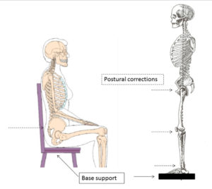 In conclusion, standing and sitting are two different postural positions. During standing, postural corrections to keep equilibrium and to prevent falling could be made at several levels such as the ankles, the knees, the hips, the pelvis and the spine. In sitting, these postural corrections could only be performed departing from the pelvis, which reduces the postural options for the body resulting in a more important role for the pelvis (Fig. 2). As a result, sitting could be considered as a pelvic steered position which is not the case for the standing position. More mobile parts (joints at the lower limbs) are available to people to keep upright standing and to prevent falling, which may result in a less important role of the pelvis compared to the sitting position. Standing is a postural position with a lot of postural variability. People must be able to select from several possible options to choose the optimal posture upon the condition. Furthermore, they must be able to adapt to the postural condition: standing or sitting. Future studies must identify the postural behavior in other positions such as lifting or kneeling. General conclusion: one correct ideal spinal postural position does not exist. Prevention programs and ergonomic advices should be adjusted (read: updated).